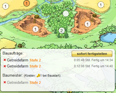 Wichtig: Die Residenz und der Palast können mit der "sofort bauen" Funktion nicht fertig gestellt werden! Des Eeiteren sind Dörfer mit einem Weltwunder davon ausgenommen.